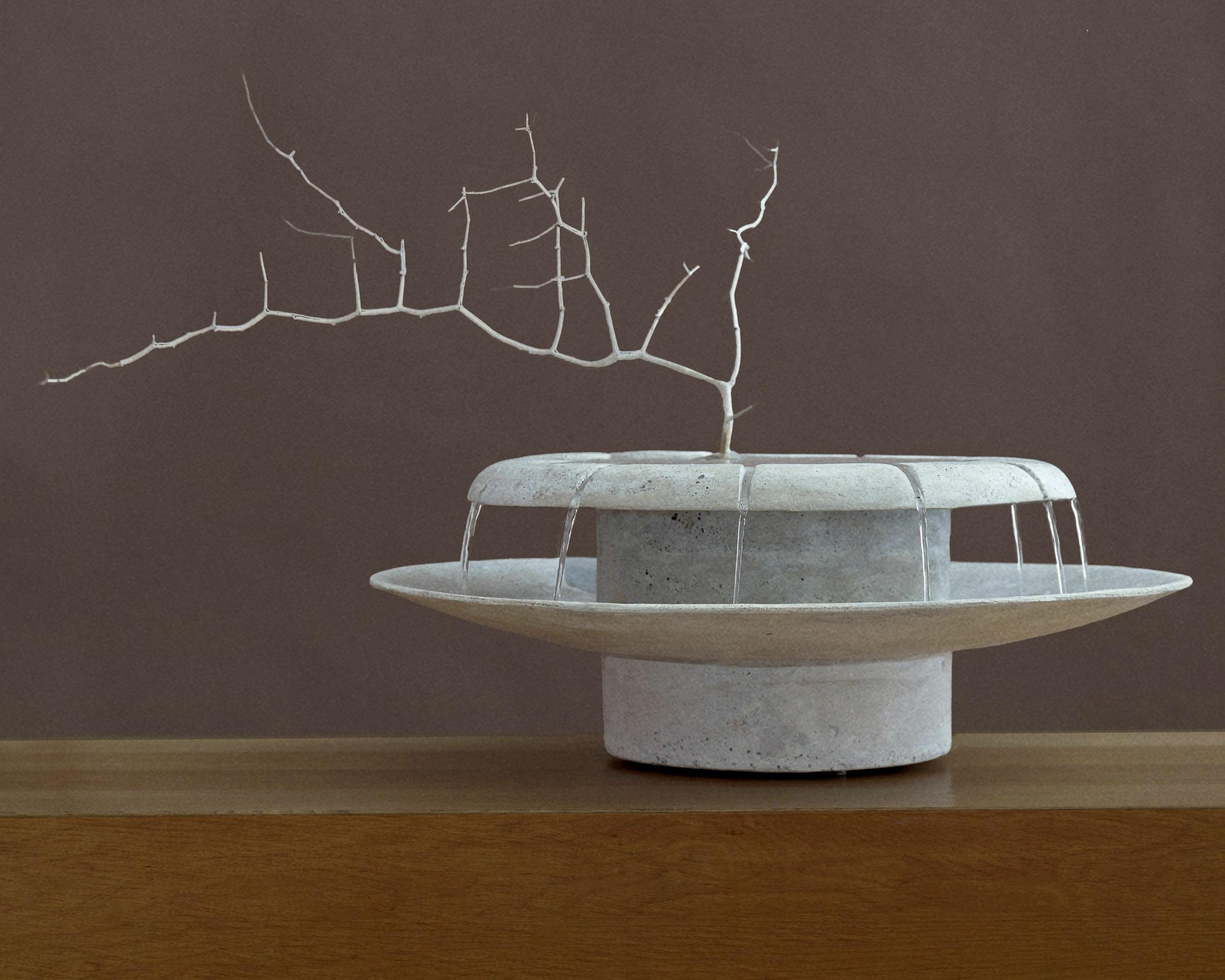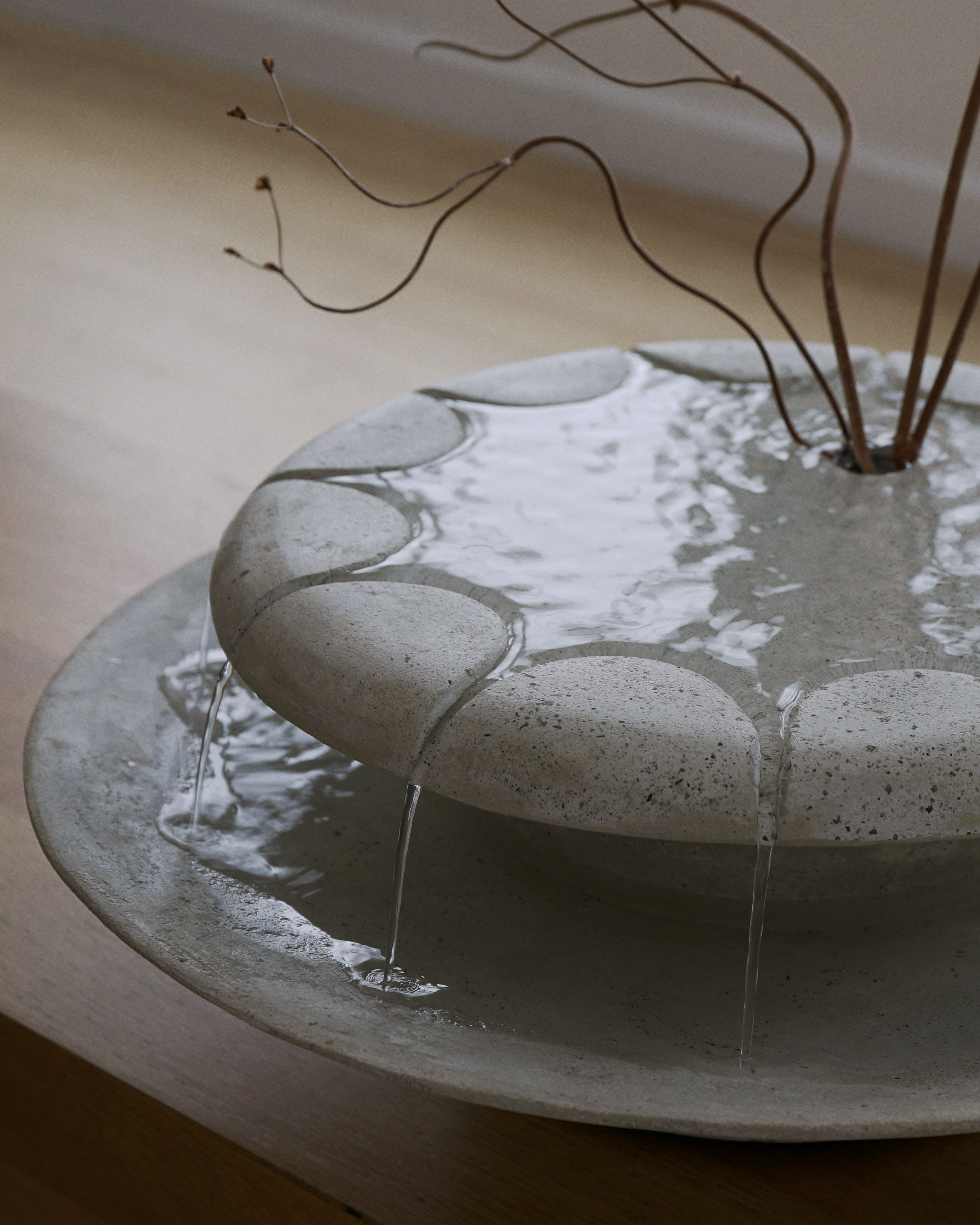 Crafted from polymer-modified cast stone, the fountain is versatile enough for both indoor and outdoor settings and can be easily cleaned. The fountain's closed-loop system recirculates the water, and its built-in opening provides a spot for an arrangement of grasses, delicate branches, or florals.